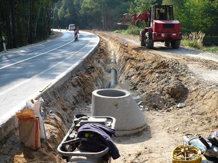 Im Bereich Leitungsbau führen wir den Bau von Kanal-, Trinkwasser- und Gasleitungen sowie für Strom und Telekommunikation aus.